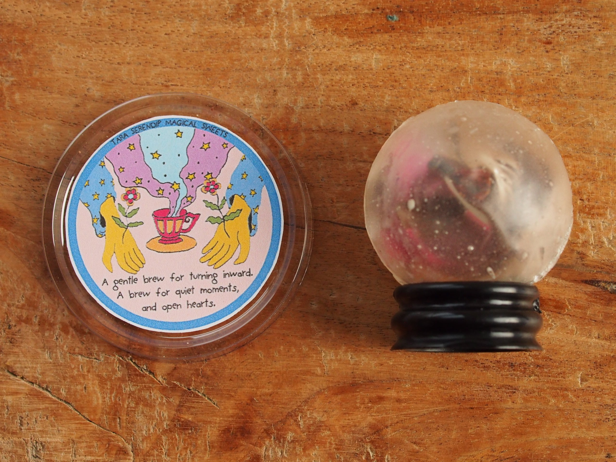 水晶玉をイメージしたティーボムはカカオハスクティーをベースに、各エレメントに呼応するハーブを加えました。