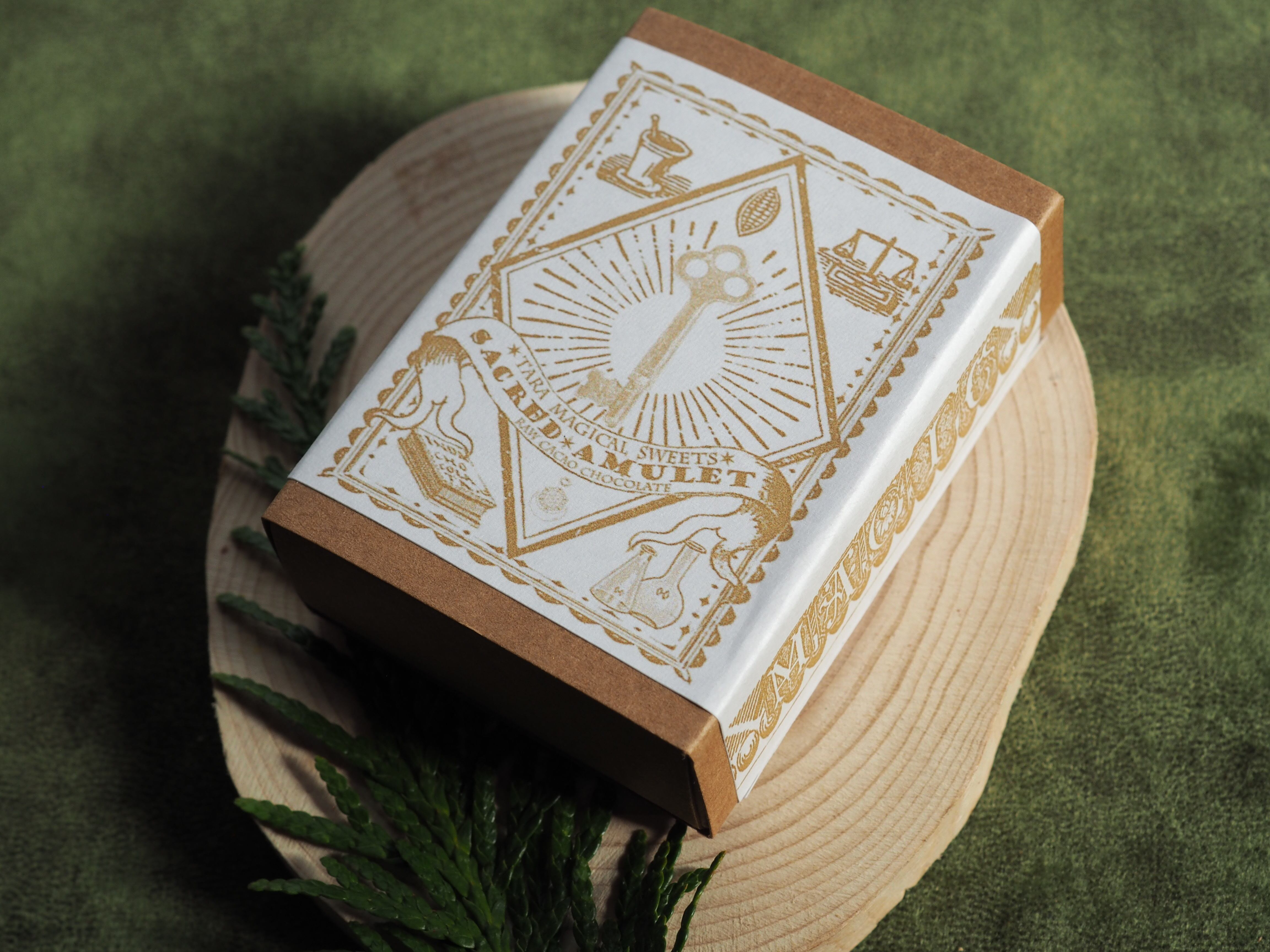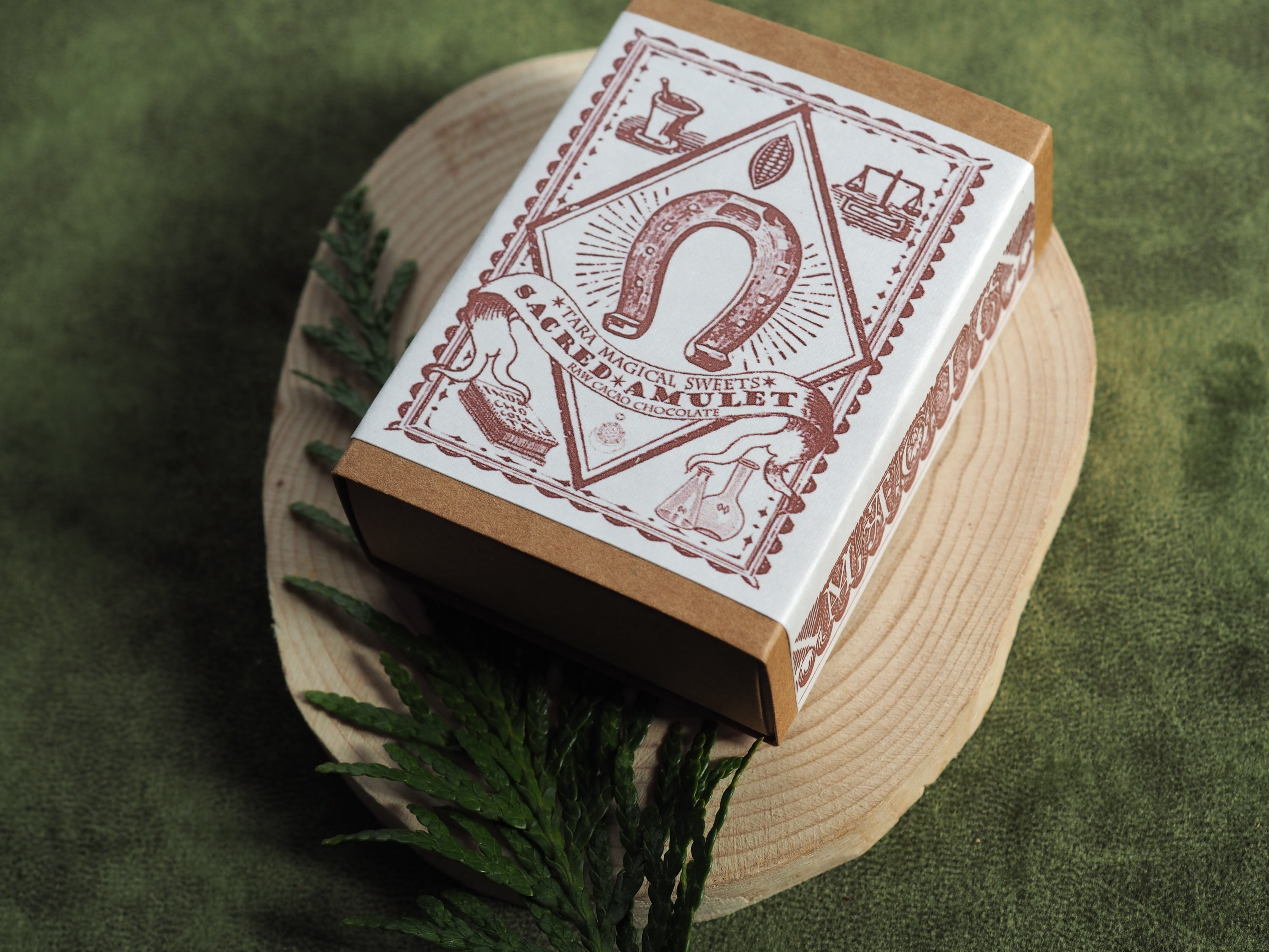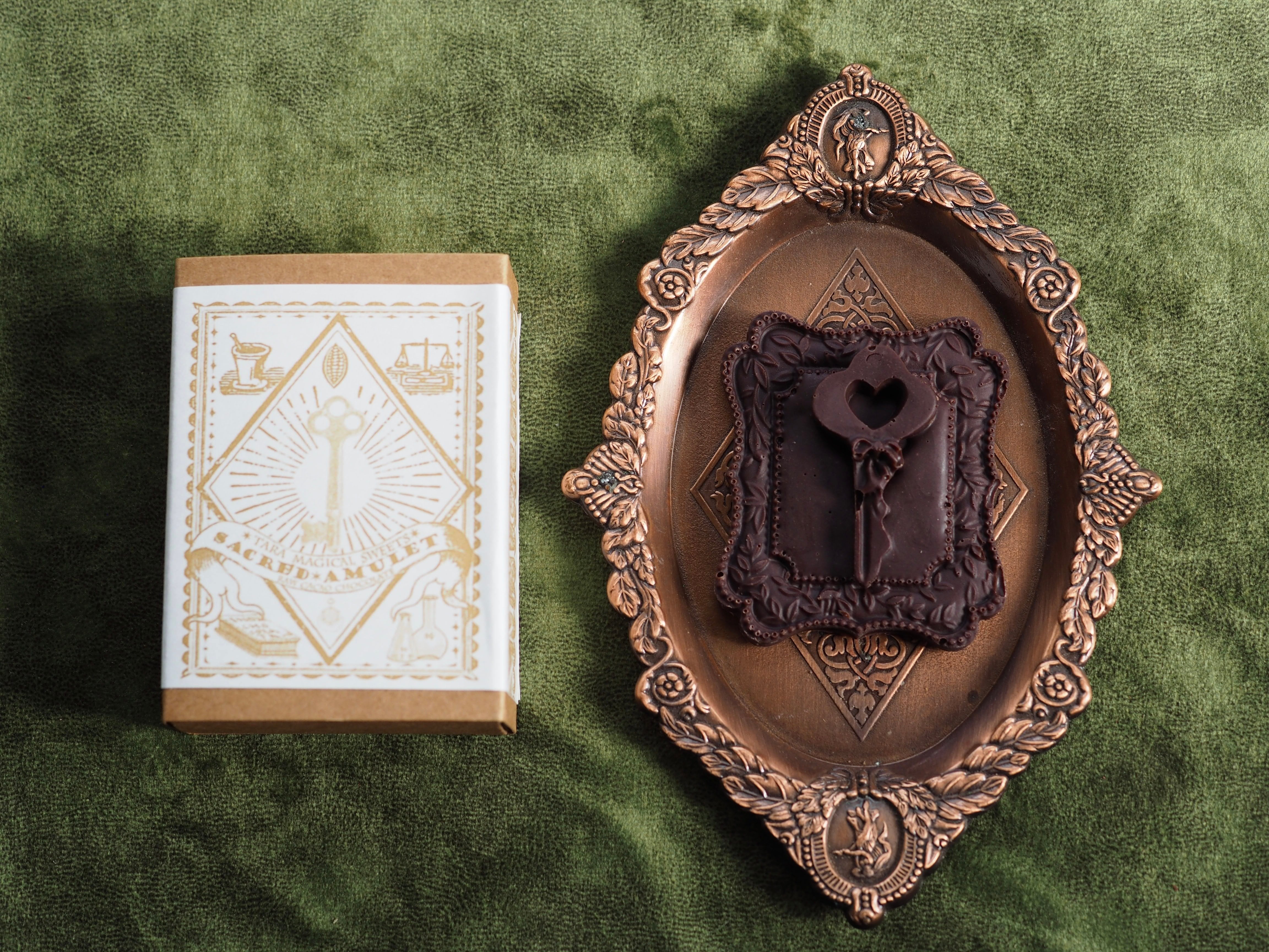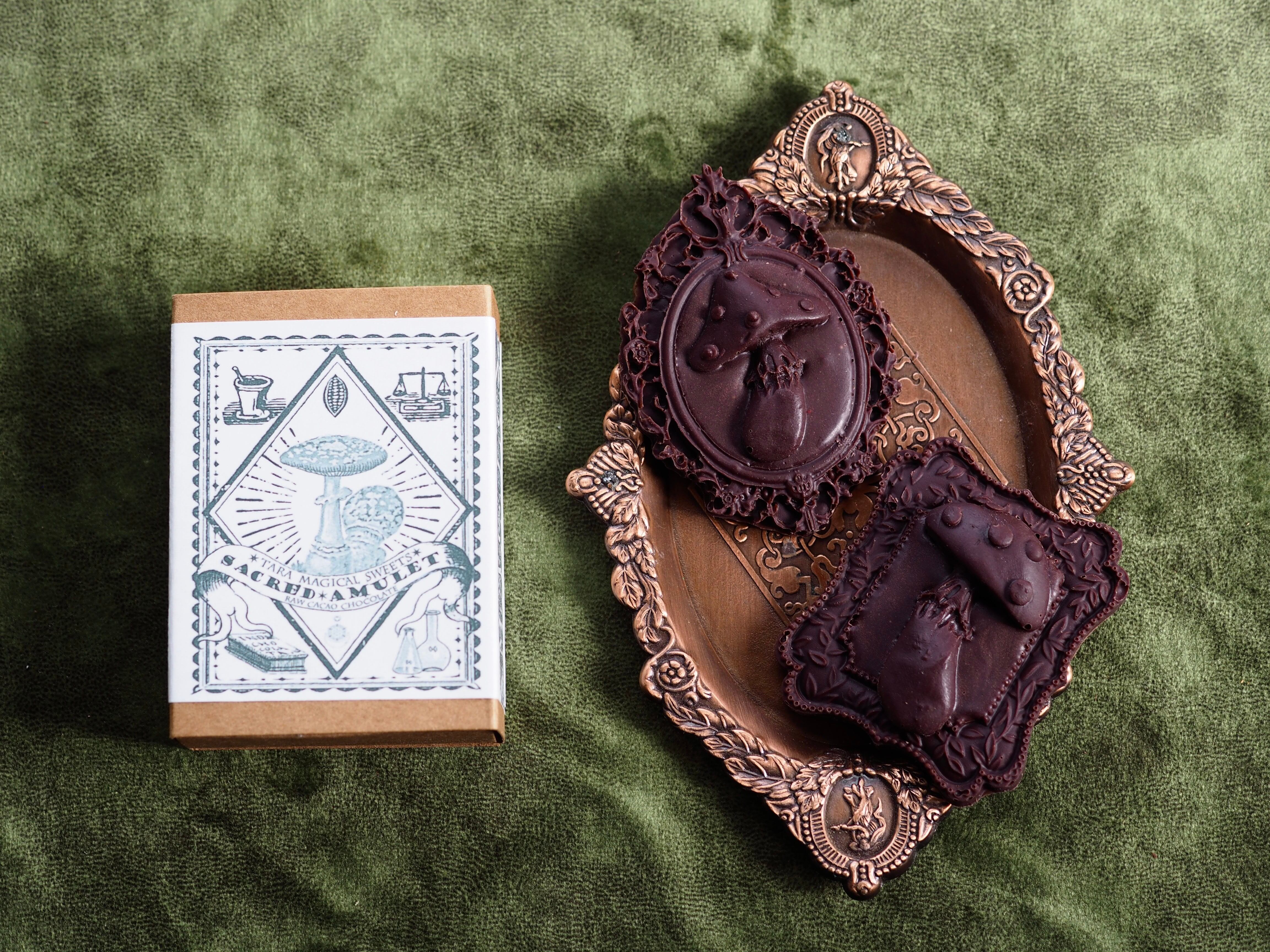 お守りのようなモチーフをかたどった、ローカカオチョコレート。