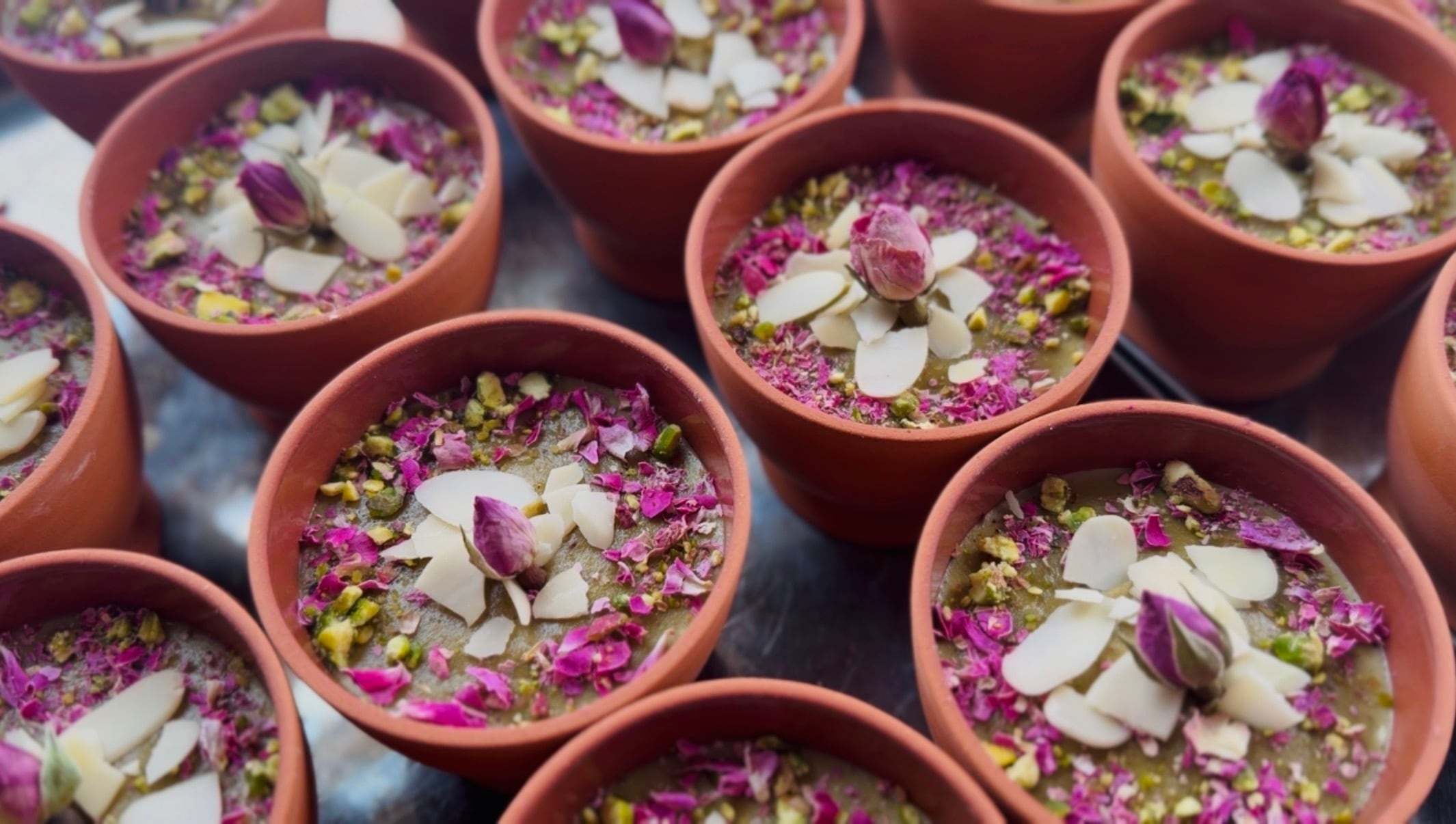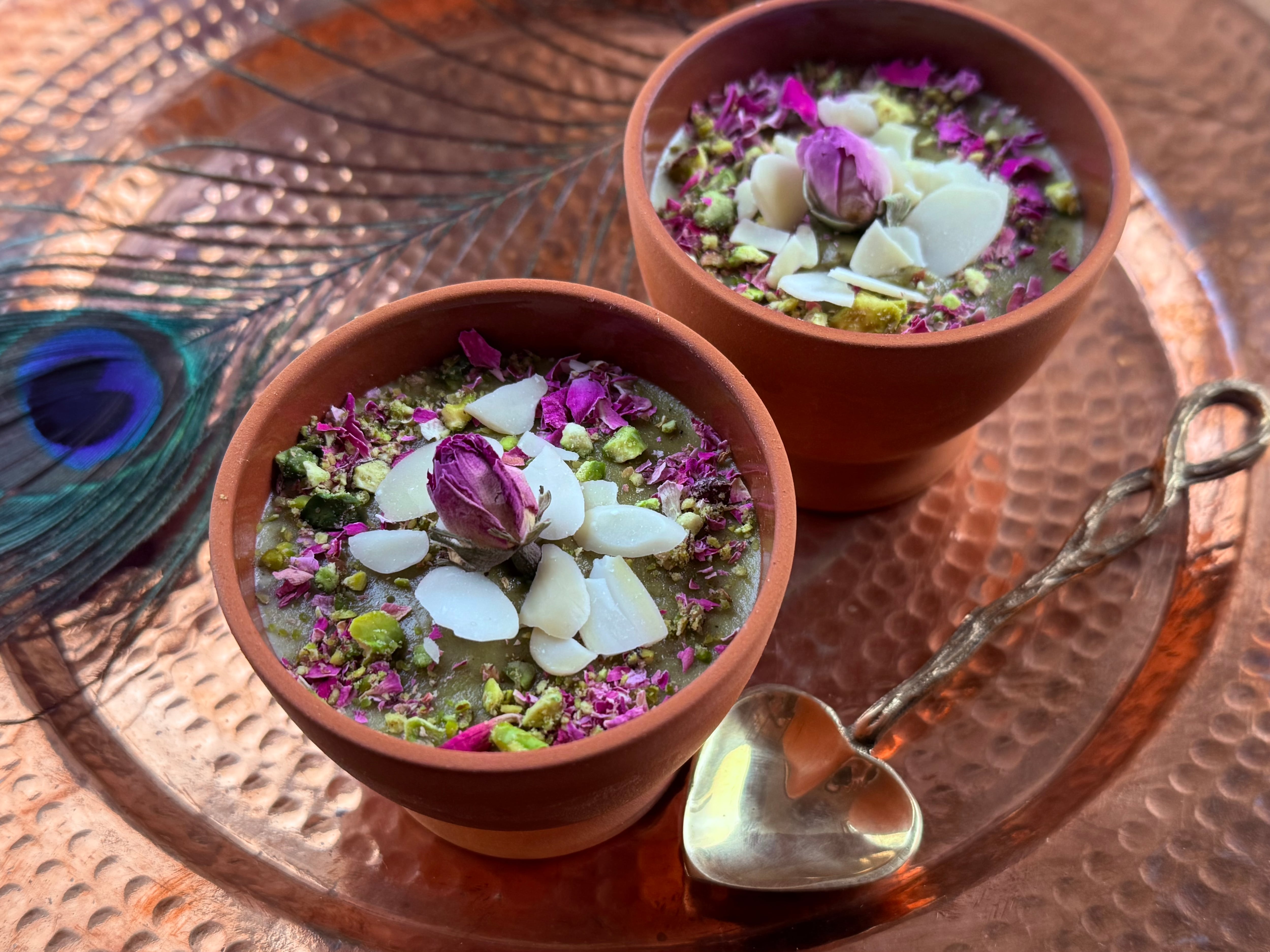 トッピングには、歯触りの良いスライスアーモンドとクラッシュピスタチオ、そしてふんわりと漂うローズの香り。