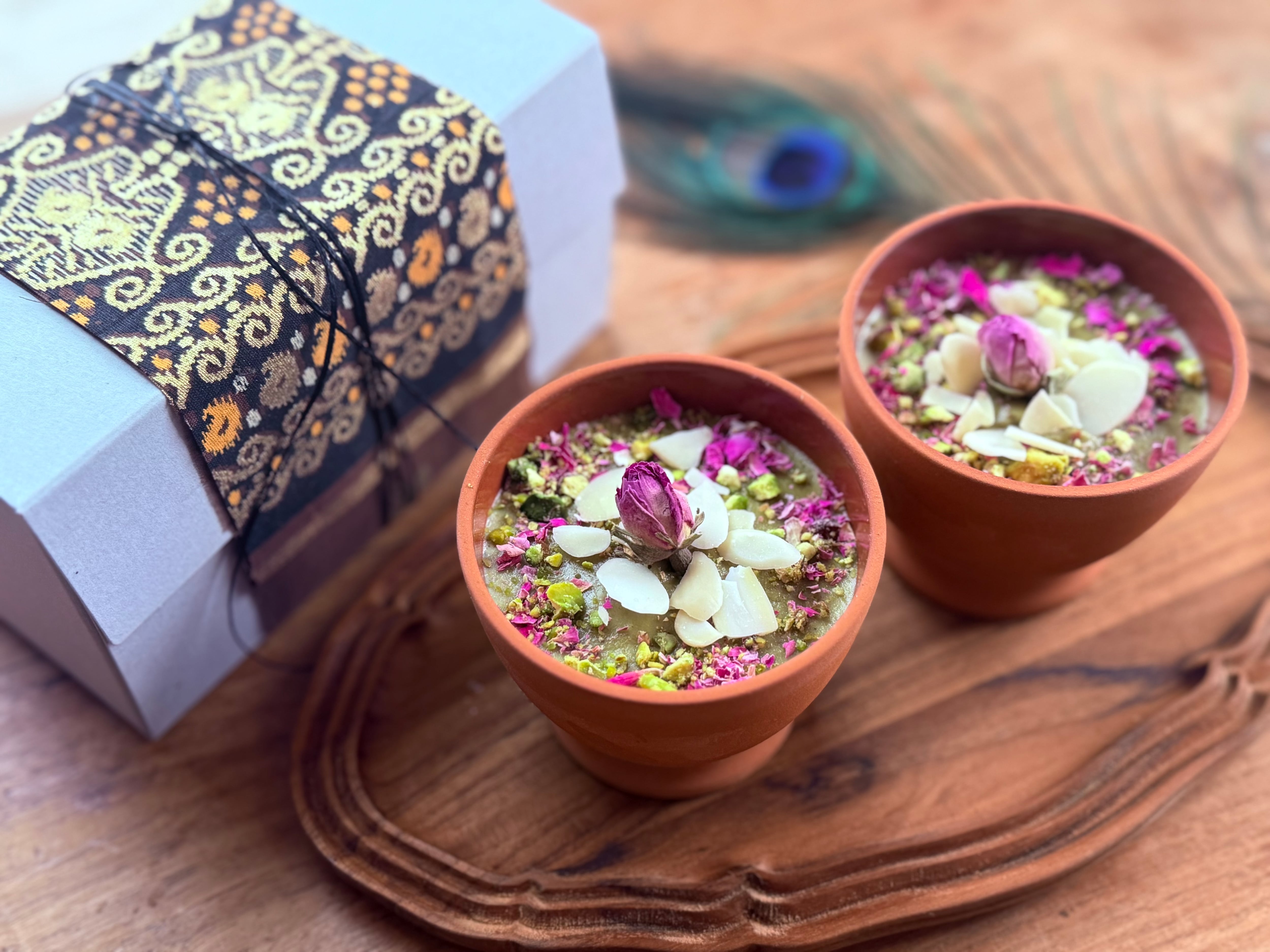 小さな素焼きのボウルに入れてお届けします。