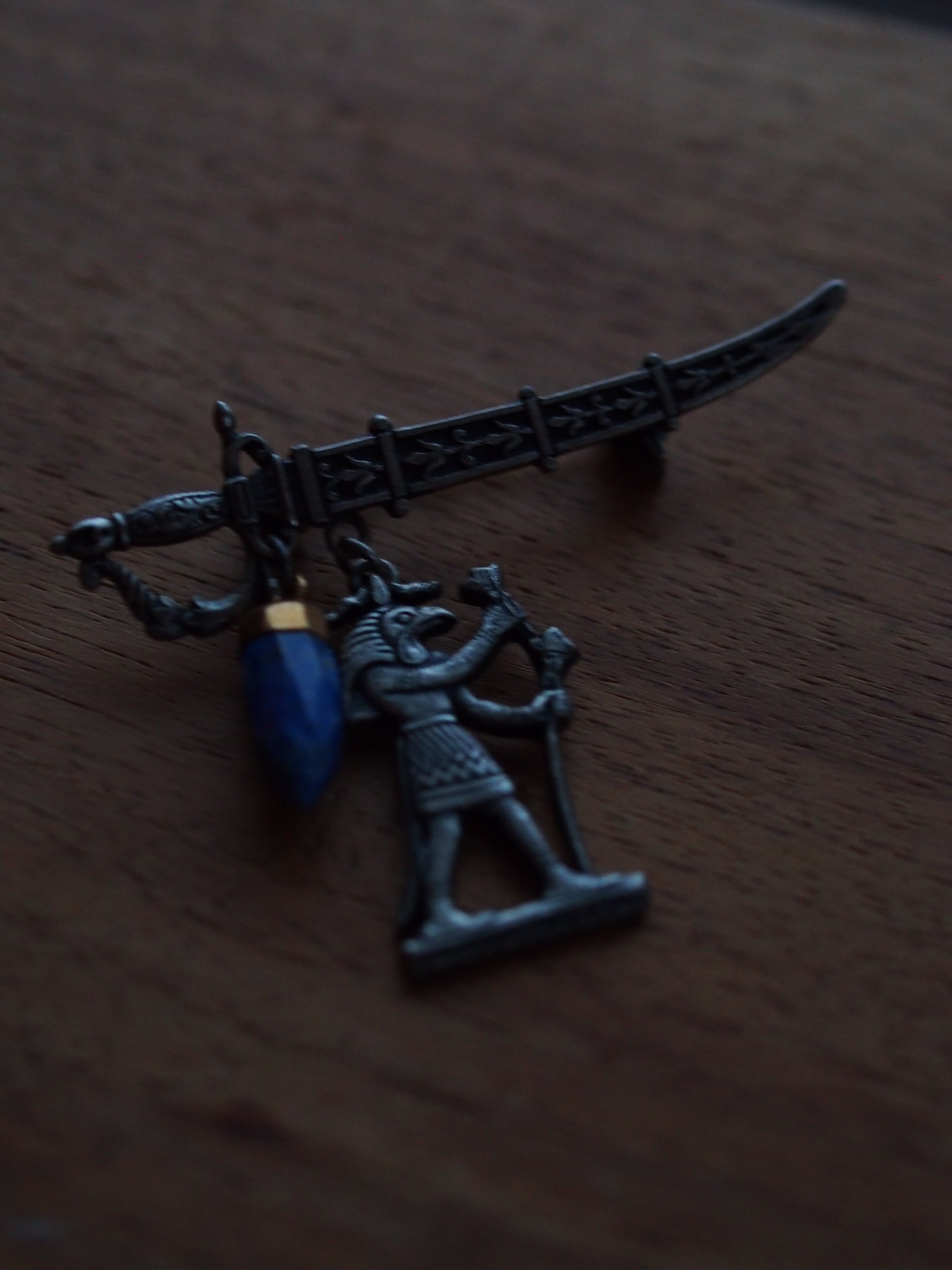 トト神とラピスラズリのブローチ・Thoth and Lapis lazuli pin