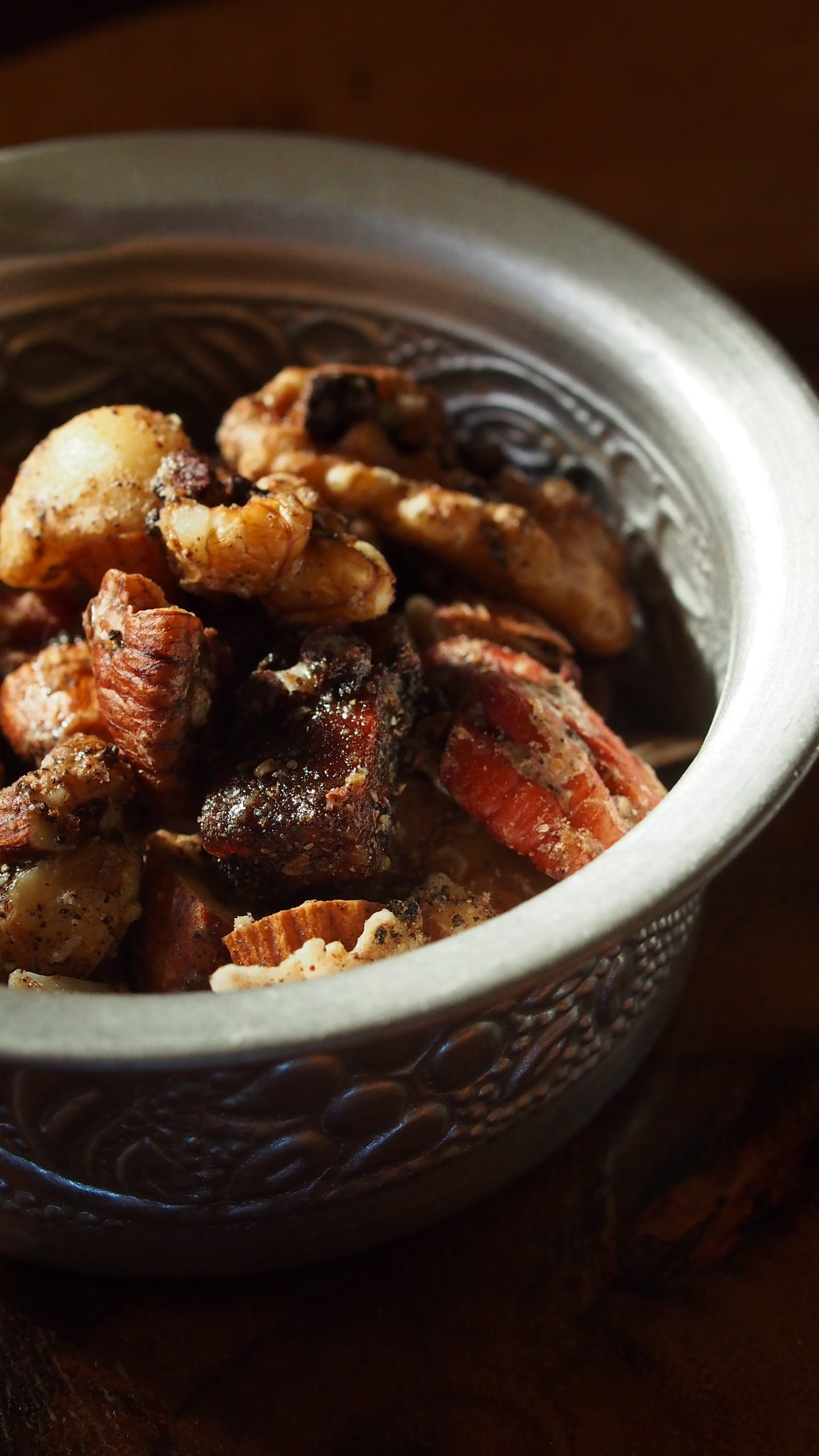 アーモンド、クルミ、ピーカンナッツ、マカダミアナッツ、メープルシロップ