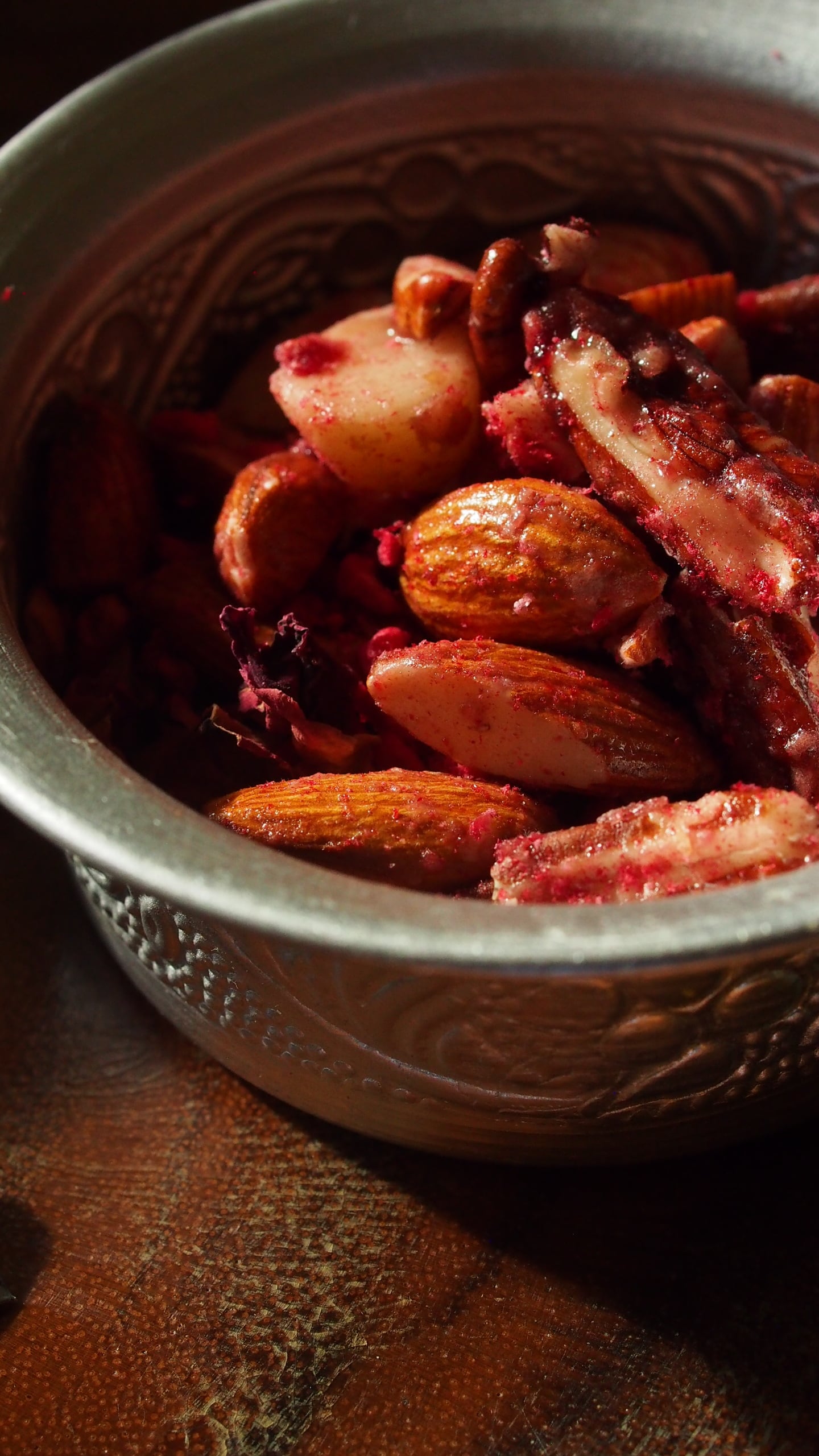 ドライいちじく、ドライラズベリー、ローズウォーター、ローズペタル